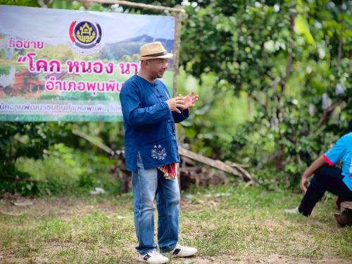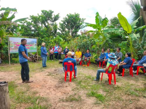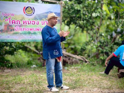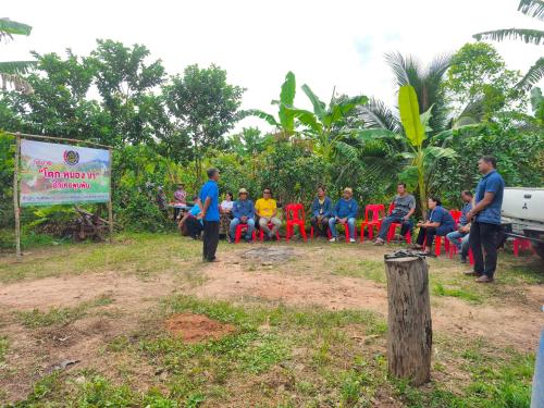 ณ ศูนย์เรียนรู้พัฒนาพื้นที่ต้นแบบ " โคก หนอง นา" แปลงนายมนตรี สุทธิชล บ้านเขาพลู หมู่ที่ 5 ตำบลท่าสะท้อน อำเภอพุนพิน จังหวัดสุราษฎร์ธานี